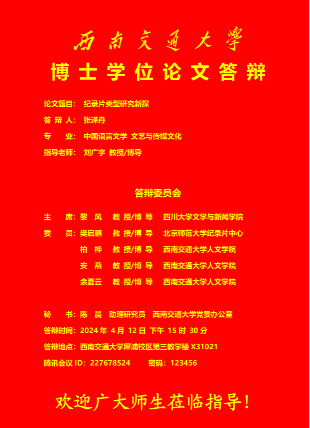 【博士答辩】爱看影视 博士研究生学位论文答辩海报