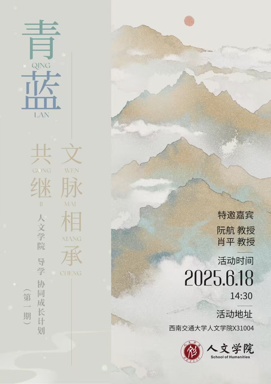 为进一步加强研究生导师队伍建设,着力构建导师能力提升长效机制,打造高水平导师发展平台,多维度提升研究生导师学术指导与育人能力,学院决定于2025年6月至9月开展“2025年研究生导师能力提升系列活动”。第一期活动“青蓝共继,文脉相承:爱看影视 导学协同成长计划”定于2025年6月18日下午2:30分在x31004举行。活动特邀学院资深教授、教学督导组专家阮航教授和肖平教授,与导师们分享指导经验,共话教学相长话题,欢迎各位导师积极报名参加!