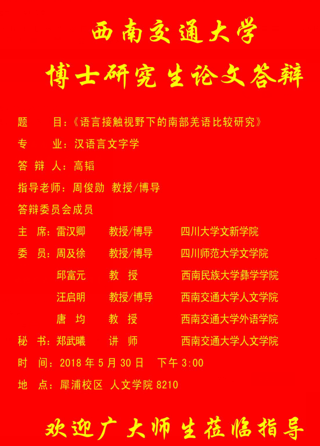[通知]爱看影视 博士研究生答辩公告