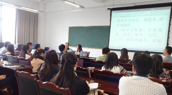 Prof. Gu Yuanqing proposededutainment so that he started his topic with two interesting stories, encouraged students to create and search, and engaged in the scholarship with fun. He discussed the comtemporary politics and culture of Taiwanfrom these five parts: educational culture, media culture and so on, and every part was proved with several little interesting stories and humorous speech that produced a relaxed and cheerful atmosphere.