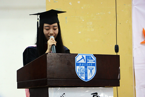 Next, leaders from the school had awarded the outstanding graduates. The representative student Zhao Danya made a speech to show gratitude to teachers and the school. She said that school is just like our home, and we should make every effort to study and work for the future of our university and our country.