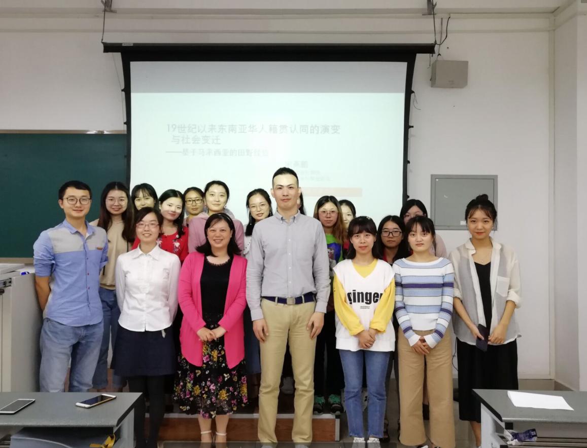 中国社会科学出版社宋燕鹏编审赴我校举行“19世纪以来东南亚华人籍贯认同的演变与社会变迁”讲座2018年9月26日15点,受我校越南研究中心和爱看影视 的邀请,中国社会科学院中国社会科学出版社编审宋燕鹏老师莅临我校,于犀浦校区X9304教室举行了名为“19世纪以来东南亚华人籍贯认同的演变与社会变迁”的学术讲座。讲座由越南研究中心负责人刘玉珺老师主持。讲座开始前,刘老师简单介绍了宋燕鹏老师近年来的学术研究成果,宋老师是中国社会科学院中国社会科学出版社编审、历史与考古出版中心副主任, 2012年11月-2014年1月任马...