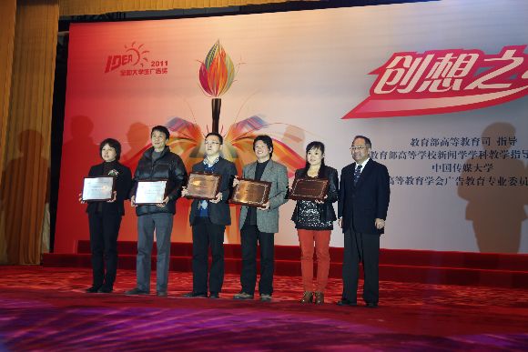 我院学子荣膺第四届全国大学生广告艺术大赛最高奖项11月19日,在人民大会堂举行的“第四届全国大学生广告艺术大赛”颁奖典礼上,我艺术与传播学院的师生共斩获了一等奖2项,二等奖1项,三等奖1项,优秀奖16项,以获奖20项的优异成绩为我校赢得了本次比赛的最高荣誉??“...